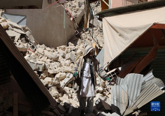 這是9月11日在摩洛哥馬拉喀什南部的穆萊村拍攝的地震損壞的建筑。新華社記者王東震攝