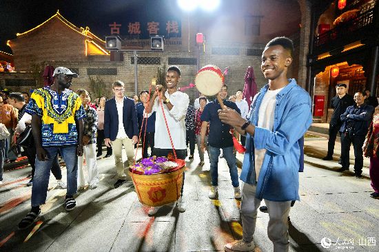 眼花繚亂的民俗表演,沉浸式的古城巡游,絢爛的城樓燈光秀,陶醉的狂歡……9月15日夜晚,在即將結(jié)束山西之行的前夜,2023“漢字緣”國(guó)際故事大會(huì)決賽的選手們夜游山西省晉城市陽(yáng)城縣郭峪古城,于燈火闌珊處感受古城中的人間煙火。(人民網(wǎng) 盧鵬宇攝)