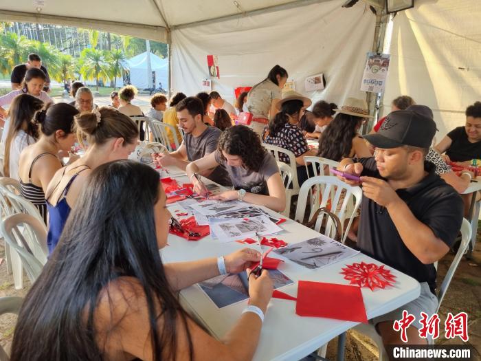 當?shù)貢r間9月16日,坎皮納斯市民在當?shù)仄咸蜒拦珗@體驗中國剪紙、書法、制作燈籠等文化活動。坎皮納斯大學孔院供圖