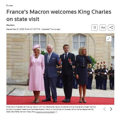中新網(wǎng)9月21日電 綜合法新社、路透社報(bào)道,當(dāng)?shù)貢r(shí)間20日,英國國王查爾斯三世抵達(dá)法國,進(jìn)行自其登基后為期三天的首次國事訪問。