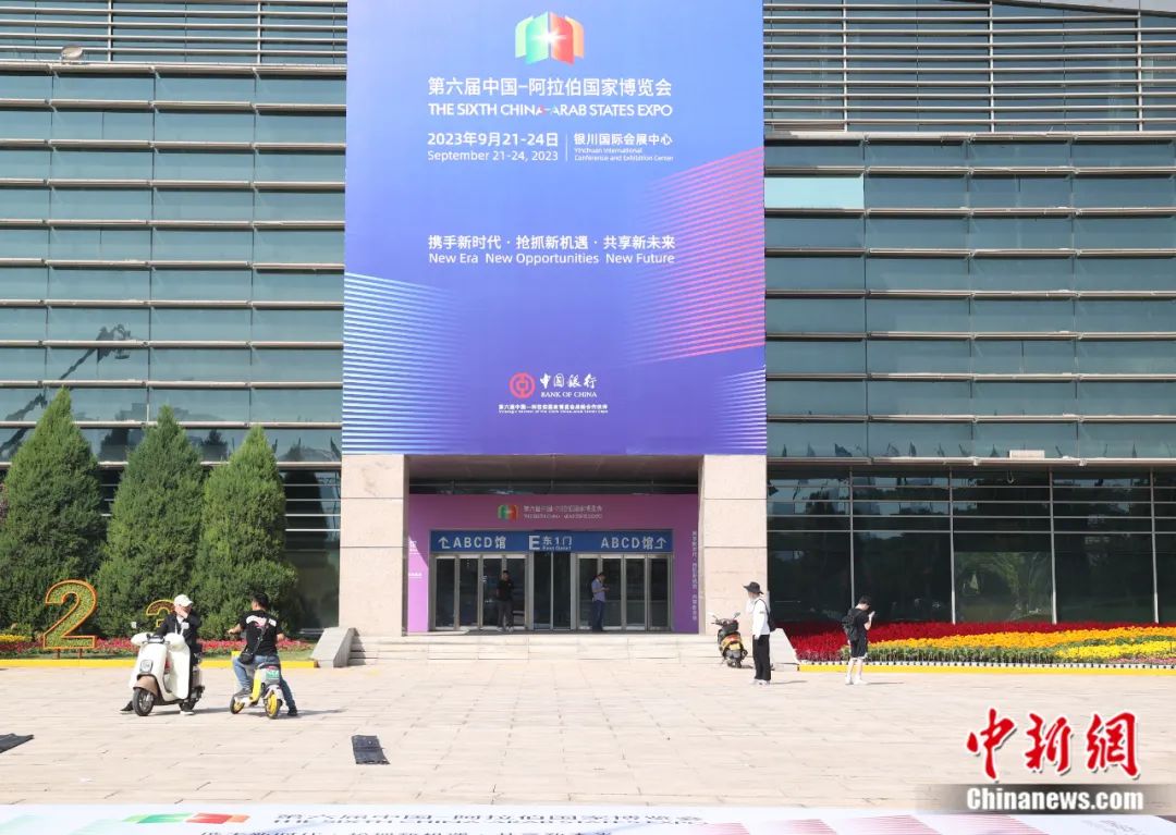 2023年9月16日,銀川國際會展中心裝扮一新,迎接即將開幕的第六屆中國—阿拉伯國家博覽會。于晶 攝