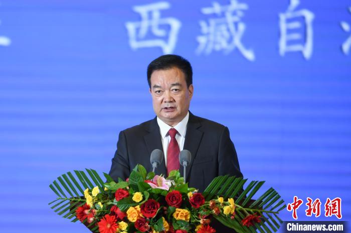 圖為開幕式上,西藏自治區(qū)黨委書記王君正作主旨講話。貢嘎來松 攝