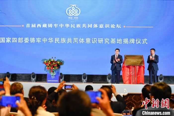 開幕式上,段毅君和西藏自治區(qū)黨委常委、宣傳部部長,西藏自治區(qū)著力創(chuàng)建全國民族團(tuán)結(jié)進(jìn)步模范區(qū)專項(xiàng)組副組長汪海洲為國家四部委“鑄牢中華民族共同體意識(shí)研究基地”揭牌。