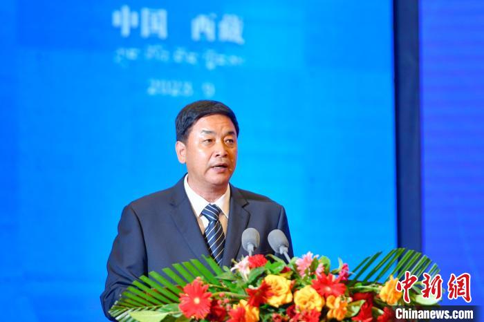 圖為西藏自治區(qū)人民政府主席嚴(yán)金海主持開幕式。 貢嘎來松 攝