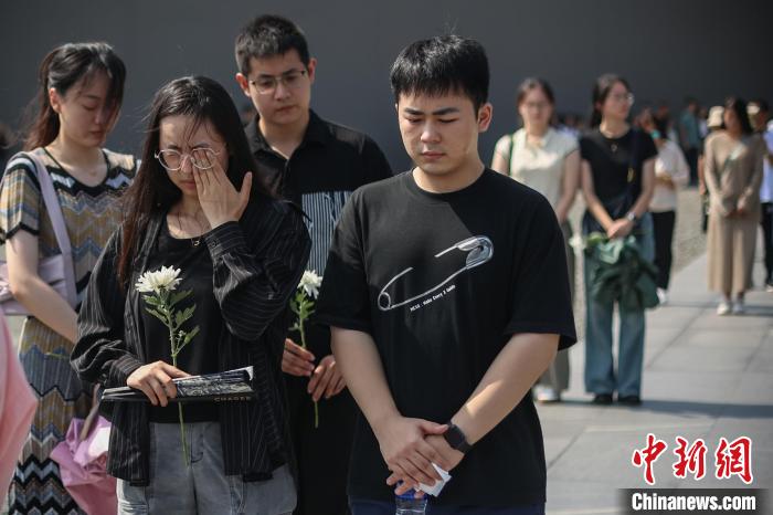 9月18日,在防空警報(bào)聲中,侵華日軍南京大屠殺遇難同胞紀(jì)念館中的參觀者駐足默哀。 泱波 攝