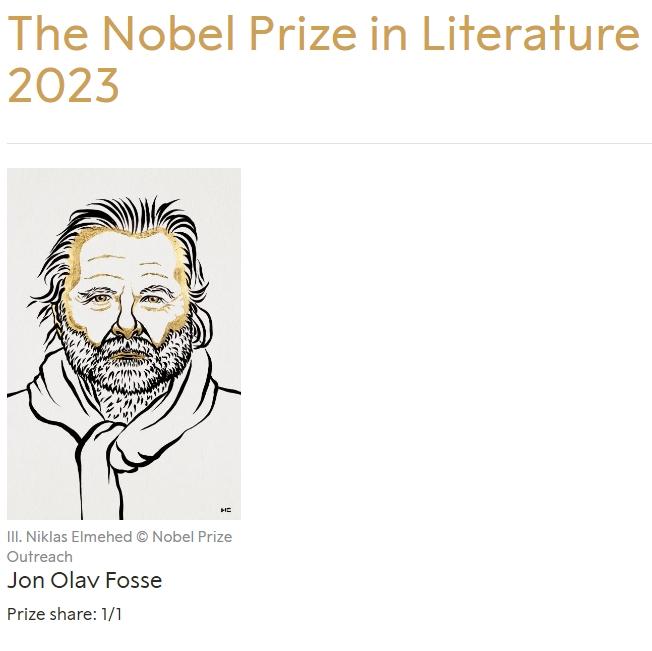 中新網(wǎng)10月5日電(張奧林)據(jù)諾貝爾獎官網(wǎng)消息,北京時間5日19時許,2023年諾貝爾文學獎揭曉,挪威作家約恩·福瑟(Jon Fosse)被授予該獎項。
