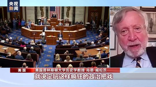 美國普林斯頓大學(xué)歷史學(xué)教授 肖恩·威倫茨:他們想要消滅“自己人”,共和黨很久以前,20世紀(jì)九十年代就決定玩這樣瘋狂的政治把戲,還經(jīng)常成功,而現(xiàn)在罷免議長已經(jīng)不是我能討論的。因?yàn)槲已芯康氖菤v史,歷史上從來沒出現(xiàn)過現(xiàn)在的情況。他們瘋了,想要盡可能制造混亂。