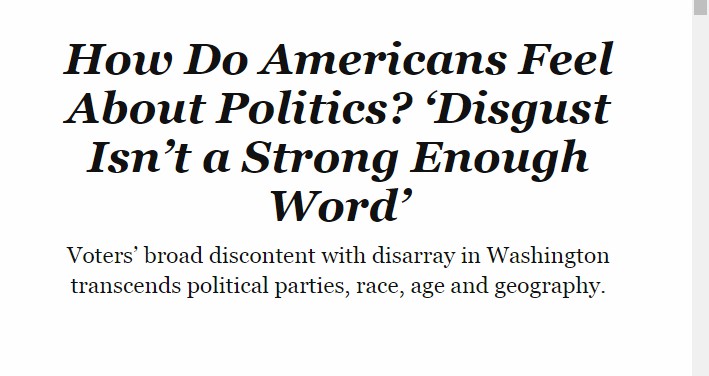 皮尤研究中心在七月份進行的一項調(diào)查發(fā)現(xiàn),美國人對政治領(lǐng)導人不滿意,這種不滿跨越了種族、年齡和黨派的界限。65%的受訪者表示,他們一想到政治就感到疲倦。
