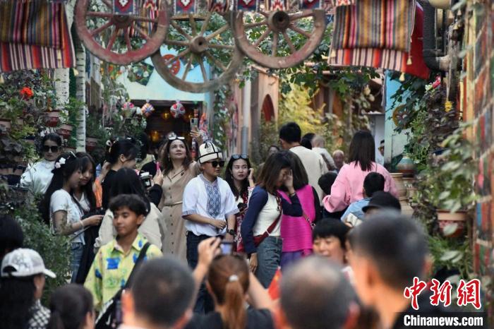 正值中秋國慶假期,位于中國西部的新疆喀什古城景區(qū)迎來旅游高峰,成為眾多游客的出行目的地。圖為10月1日,喀什古城景區(qū)里絡繹不絕的游客?!≈行戮W記者 孫亭文 攝