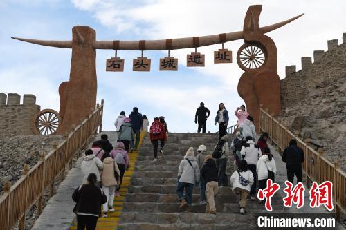 圖為10月2日拍攝的位于帕米爾高原上的塔什庫爾干縣石頭城遺址參觀的游客?!≈行戮W記者 孫亭文 攝