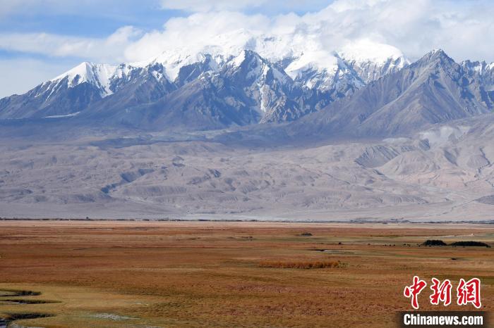 圖為10月2日拍攝的新疆喀什地區(qū)塔什庫爾干縣塔合曼濕地和慕士塔格雪峰。中新網記者 孫亭文 攝