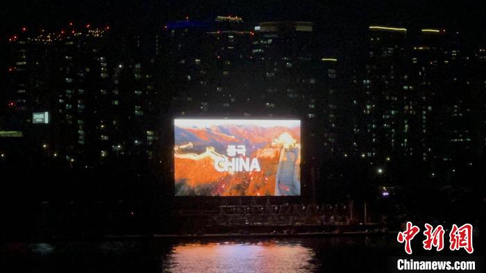 圖為慶典中播放中國主題宣傳片。中新社記者 劉旭 攝