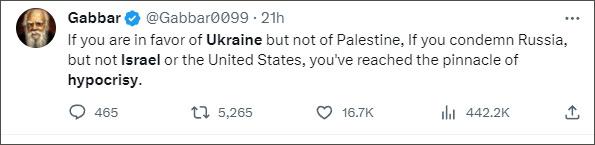 美國合眾國際社(UPI)報道注意到,有很多媒體專欄作者和社交媒體用戶都指出了西方在俄烏沖突等問題上的“虛偽行為”,佩特羅并不是唯一一位。例如一名認證為“作家”的社交媒體用戶寫道:“如果你支持烏克蘭而不支持巴勒斯坦,如果你譴責俄羅斯卻不譴責以色列或美國,那么你就已經(jīng)達到了虛偽的頂峰?!?/p>