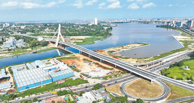 近年來,中國企業(yè)為提升非洲基礎(chǔ)設(shè)施水平、加速互聯(lián)互通和一體化進(jìn)程、促進(jìn)當(dāng)?shù)亟?jīng)濟(jì)社會發(fā)展和民生改善等作出了積極貢獻(xiàn)。圖為中國路橋工程有限責(zé)任公司承建的科特迪瓦阿比讓科科迪斜拉橋項目。