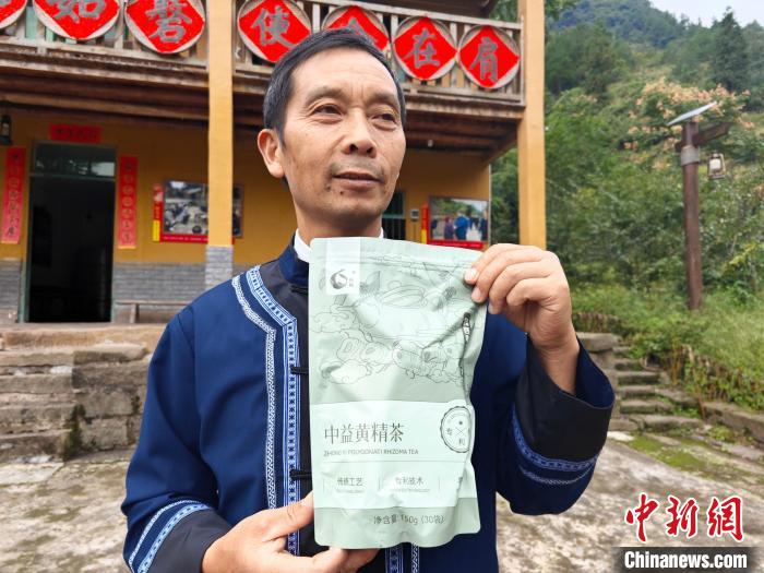 圖為華溪村支部書(shū)記、村主任王祥生展示黃精茶。中新網(wǎng)記者劉賢 攝