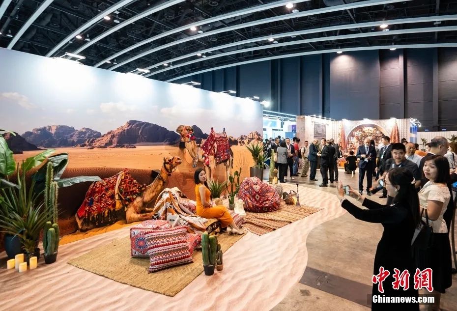 2023年9月,第八屆“一帶一路”高峰論壇在香港舉行,與會(huì)者在宣傳展板前留影。