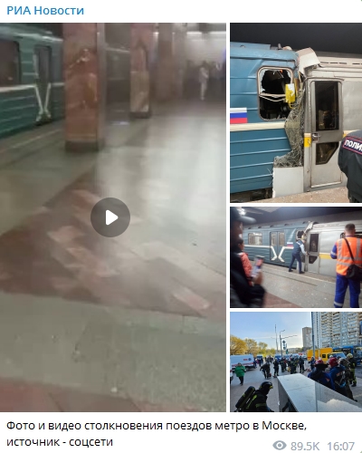莫斯科市長索比亞寧在社交媒體上稱,事故導(dǎo)致一名列車司機(jī)受傷,正在為其提供醫(yī)療救助;沒有乘客重傷。
