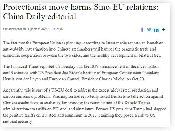和評(píng)理|歐盟將對(duì)中國(guó)鋼鐵展開(kāi)反補(bǔ)貼調(diào)查?或讓中歐雙方俱傷美國(guó)漁翁得利,應(yīng)謹(jǐn)慎行之