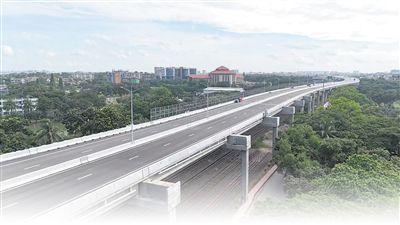 由中國山東高速集團(tuán)主導(dǎo)投資建設(shè)運營的孟加拉國首條高架快速路——達(dá)卡機場高架快速路項目(一期)通車儀式9月2日在孟加拉國首都達(dá)卡舉行。項目通車后極大改善了達(dá)卡市區(qū)交通狀況。圖為孟加拉國達(dá)卡機場高架快速路項目(一期)遠(yuǎn)景。本報記者 孫廣勇攝
