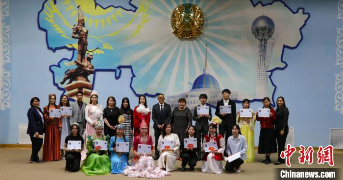 中新網(wǎng)阿斯塔納10月13日電 當(dāng)?shù)貢r(shí)間13日,哈薩克斯坦阿布萊汗國(guó)際關(guān)系與外國(guó)語(yǔ)大學(xué)孔子學(xué)院(簡(jiǎn)稱孔院)攜手大學(xué)東方學(xué)系、中哈天然氣管理合資公司聯(lián)合舉辦以“朗誦先哲詩(shī)、睦鄰友好情”為主題的第五屆阿拉木圖地區(qū)高校大學(xué)生阿拜詩(shī)歌中哈俄語(yǔ)朗誦賽。中國(guó)駐阿拉木圖總領(lǐng)事館領(lǐng)事陳湘云、靳璽,中哈天然氣管理合資公司領(lǐng)導(dǎo)及各高校師生共計(jì)兩百余人參加本次活動(dòng)。
