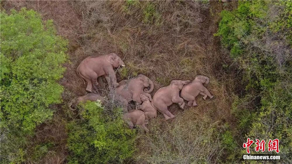 圖為北上南歸的亞洲象群。云南省森林消防總隊 供圖