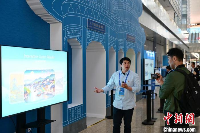 在人工智能繪畫和動(dòng)畫體驗(yàn)區(qū),體驗(yàn)者只需在現(xiàn)場(chǎng)觸控屏前隨意勾畫線條輪廓,智能引擎將據(jù)此生成意境超拔的山水畫卷,讓觀眾體驗(yàn)前沿科技與傳統(tǒng)繪畫交融之趣。體驗(yàn)區(qū)內(nèi)的智能引擎還可建構(gòu)虛擬人物,生成動(dòng)畫短片暢游打卡勝地,讓體驗(yàn)者置身于古都風(fēng)貌和現(xiàn)代生活。
