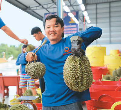 “榴蓮種植面積每年都在增長(zhǎng),一些橡膠、棕櫚園紛紛改種榴蓮,因?yàn)橹袊?guó)市場(chǎng)巨大,采購(gòu)量逐年遞增。以前每公斤榴蓮只能賣三四十泰銖,賣到80泰銖果農(nóng)就高興得不得了,可這兩年漲到了一百三四十泰銖,中國(guó)節(jié)日期間甚至漲到180泰銖?!碧﹪?guó)南部榴蓮協(xié)會(huì)會(huì)長(zhǎng)西立告訴記者,“以前果農(nóng)的日子不好過,很多年輕人不愿做果園生意,但現(xiàn)在不少果農(nóng)后代在大學(xué)畢業(yè)后都選擇返回家鄉(xiāng),用知識(shí)發(fā)展果園。”