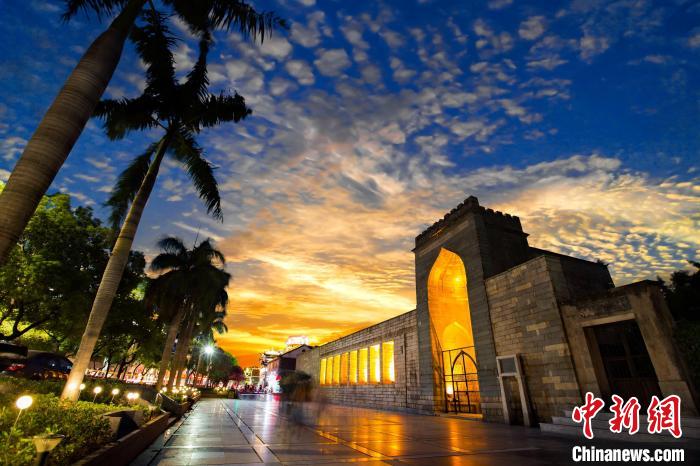 在古代海上絲綢之路的起點城市——福建泉州,當落日余暉灑落于清凈寺前的廣場,披上霞裝的千年古寺散發(fā)出濃郁的異域風情。