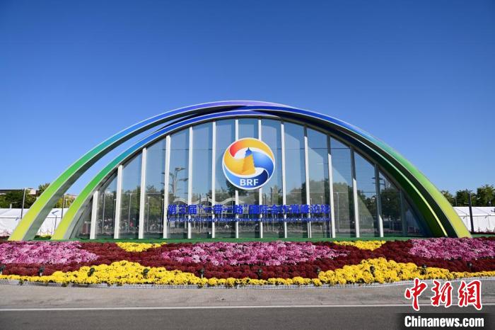 10月15日,北京,國家會(huì)議中心外的第三屆“一帶一路”國際合作高峰論壇景觀布置。當(dāng)日,位于國家會(huì)議中心的第三屆“一帶一路”國際合作高峰論壇新聞中心啟動(dòng)試運(yùn)行?!≈行律缬浾?田雨昊 攝