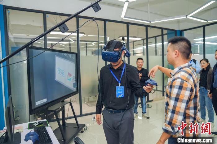 10月12日,柬埔寨青年代表在廣西桂林一家科技企業(yè)體驗VR技術(shù)。中國(廣西)國際青年交流學院供圖
