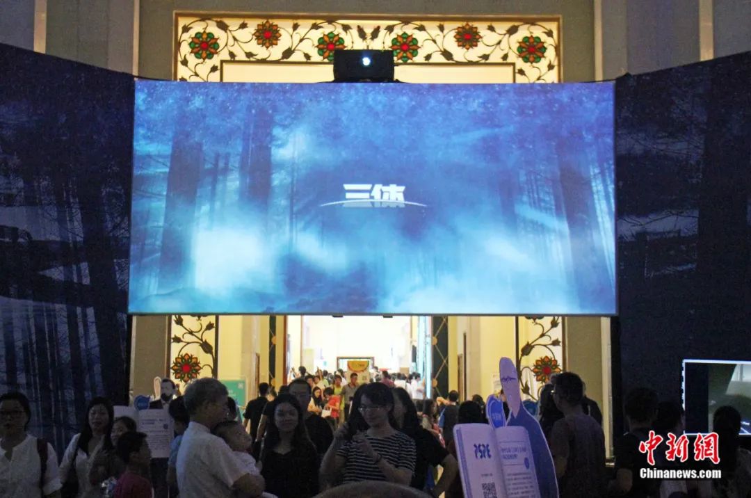 2016年9月17日,上海展覽中心的科普產(chǎn)品博覽會(huì)上,劉慈欣科幻小說《三體》的主題展館受到科幻迷關(guān)注。陳玉宇 攝