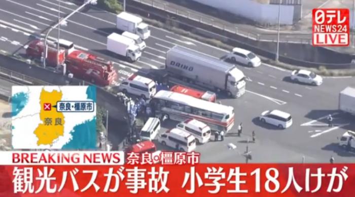 據(jù)報道,事發(fā)時車內(nèi)共有34名小學(xué)生,另外還有3名教師,一行人原本是計劃前往奈良公園參加遠(yuǎn)足活動,但在橿原市一個路口發(fā)生車禍。