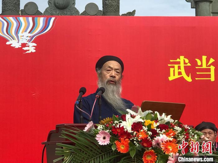 10月21日,武當(dāng)山紫霄宮方丈升座暨癸卯(2023)年全真派道士傳戒活動(dòng)典禮在湖北省丹江口市靜樂(lè)宮舉行。中國(guó)道教協(xié)會(huì)會(huì)長(zhǎng)李光富道長(zhǎng)升座武當(dāng)山紫霄宮方丈。圖為李光富致答謝辭。中新網(wǎng)記者 陳建新 攝