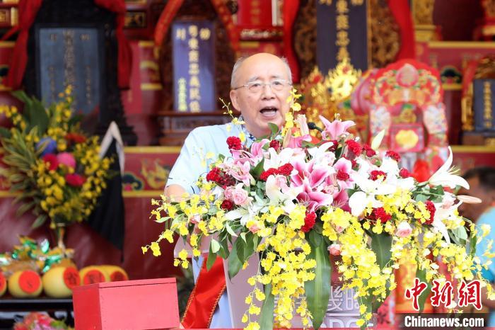 10月22日,臺北客家義民嘉年華主祭大典在臺北舉辦。世界客屬總會榮譽總會長吳伯雄致辭?!≈行律缬浾?陳小愿 攝