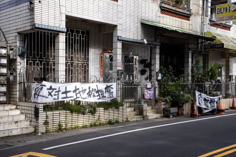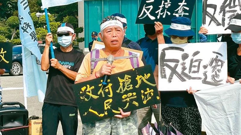 圖為遭征收區(qū)域的桃園居民不滿被征地,拉起布條抗?fàn)?。圖自《聯(lián)合報(bào)》