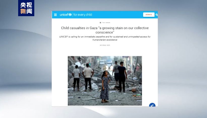聯(lián)合國(guó)兒童基金會(huì)呼吁沖突各方盡快?;稹⒃试S人道主義救援物資進(jìn)入加沙。