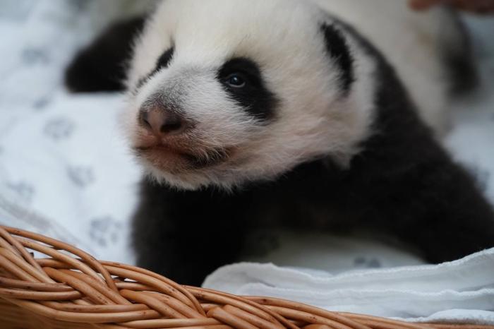 園方10月6日發(fā)文稱,熊貓幼崽在出生后第42天睜開了眼睛,開始對光線有所反應,但要到兩個月左右時才能開始看見東西。