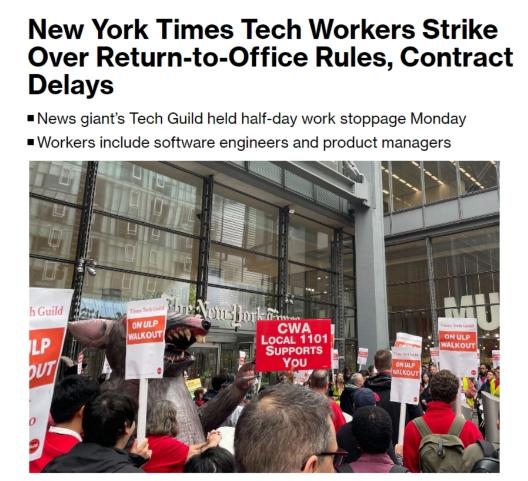 中新網(wǎng)10月31日電 據(jù)彭博社報道,當(dāng)?shù)貢r間30日,《紐約時報》的技術(shù)人員舉行了罷工行動,他們指責(zé)公司單方面強(qiáng)迫其回公司辦公,且未與職員進(jìn)行“有誠意的談判”。