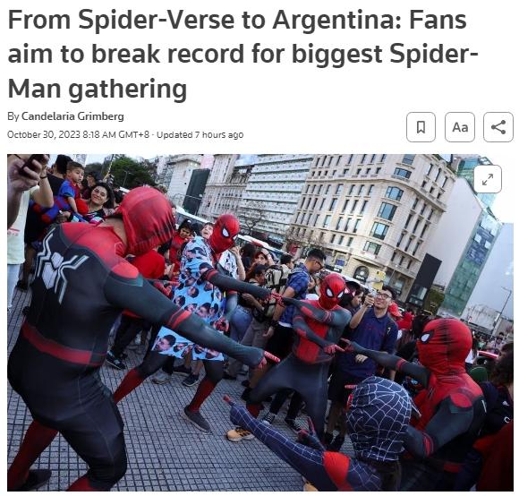 據(jù)報道,阿根廷網(wǎng)紅尤基·丁恩(Uki Deane)通過社交媒體籌辦了這次活動,希望能一舉打破馬來西亞2023年6月創(chuàng)下的685名“蜘蛛俠”齊聚的紀錄。