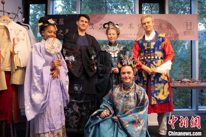 圖為部分參與活動(dòng)的德國學(xué)生身著漢服進(jìn)行合影。漢文化藝術(shù)交流中心供圖