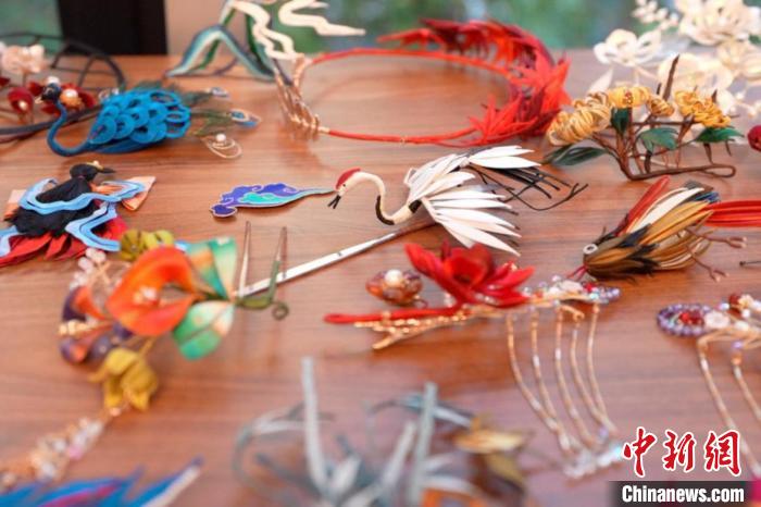 圖為活動(dòng)展示的部分中國傳統(tǒng)發(fā)簪配飾。漢文化藝術(shù)交流中心供圖
