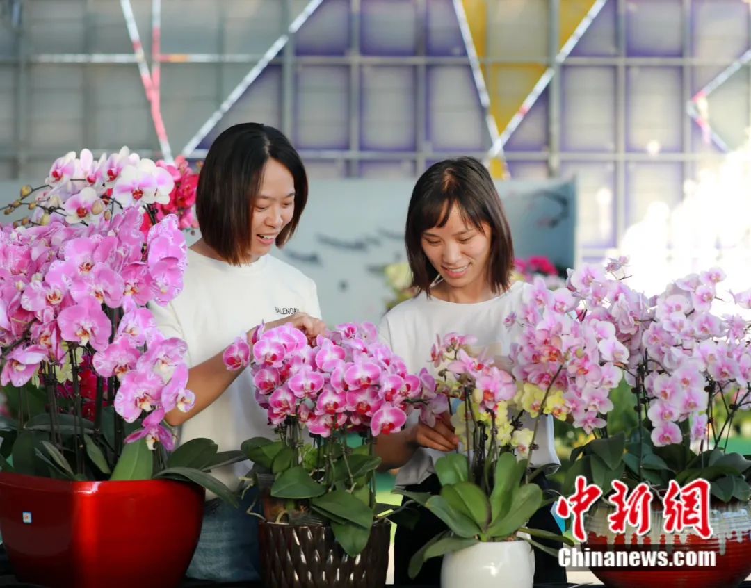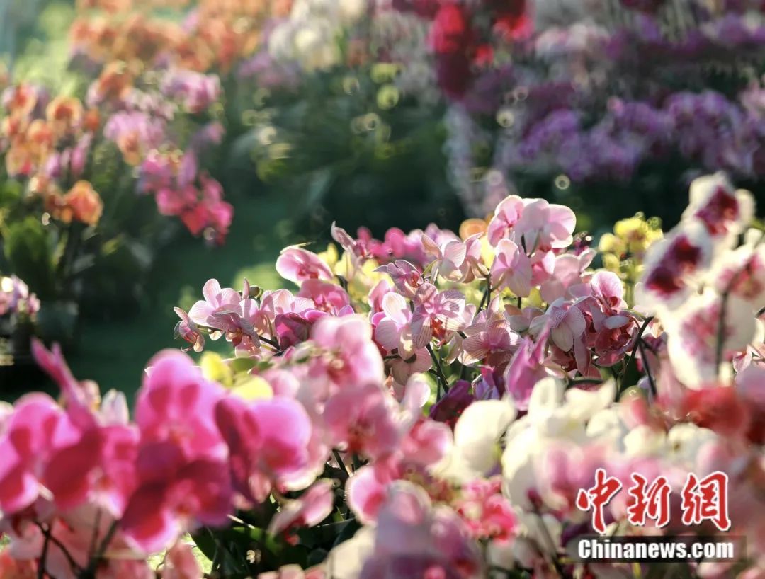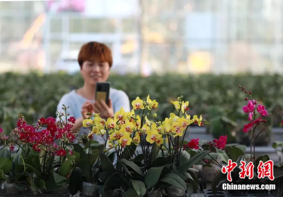 32萬平方米的溫室大棚內(nèi),不同品種的蘭花競相開放,形成一片蔚為壯觀的蘭花海洋。