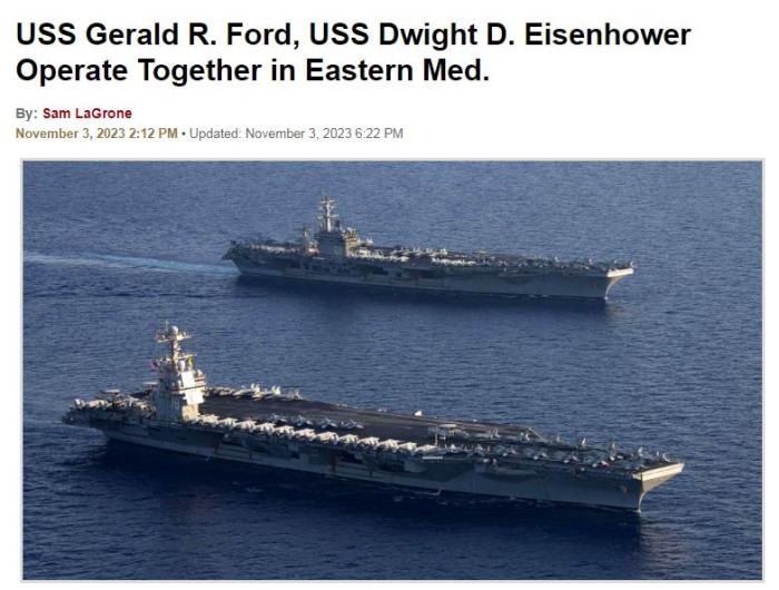 中新網(wǎng)11月4日電 綜合外媒報(bào)道,美國第六艦隊(duì)當(dāng)?shù)貢r(shí)間3日宣布,過去三天里,美國海軍在東地中海舉行雙航母演習(xí)。