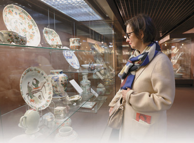法國游客在欣賞中國瓷器。