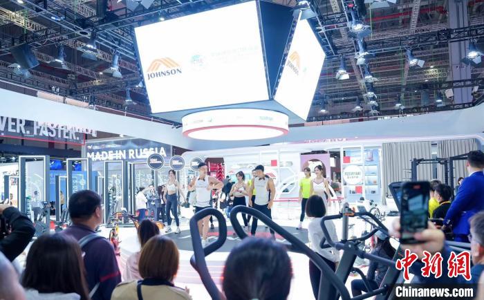 11月7日,第六屆進博會上,臺資企業(yè)喬山健康科技(上海)有限公司在展臺舉行活動。(喬山集團供圖)
