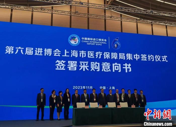 11月8日,上海市醫(yī)療保障局在第六屆進博會現場舉行部分帶量采購中選藥品和高值醫(yī)用耗材采購意向集中簽約儀式暨醫(yī)保政策政企交流會。上海市醫(yī)保局供圖