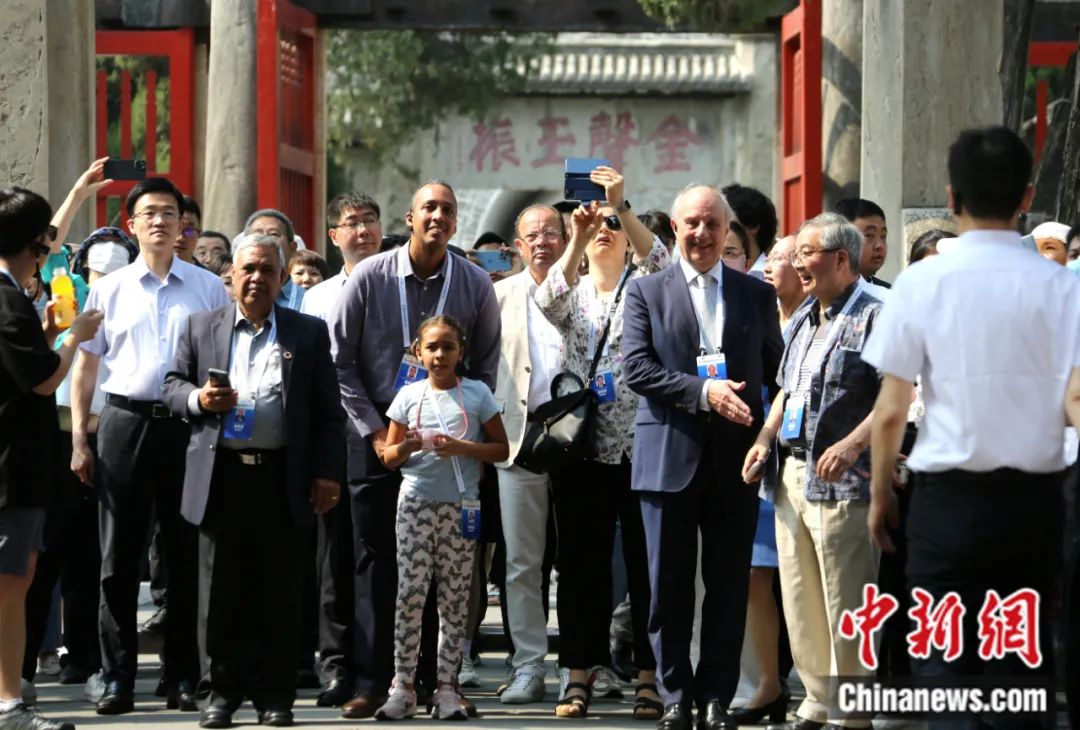 2023年6月27日,正在山東曲阜參加世界互聯網大會數字文明尼山對話的中外嘉賓,來到孔廟、孔府沉浸式體驗中華傳統(tǒng)文化。沙見龍 攝