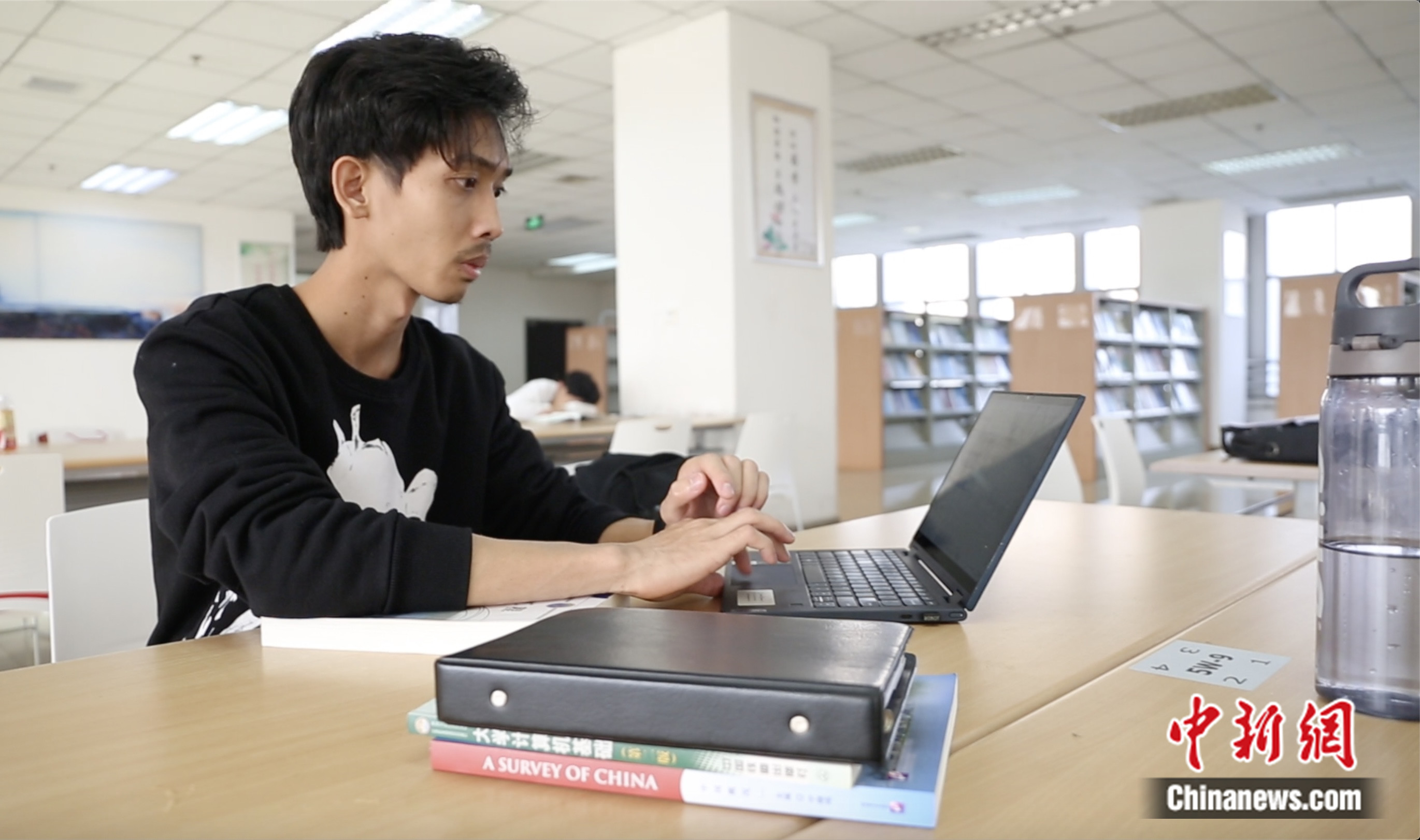 2023年10月,就讀于蘭州交通大學(xué)的留學(xué)生陳君其正在圖書館里自習(xí)。高瑩 攝