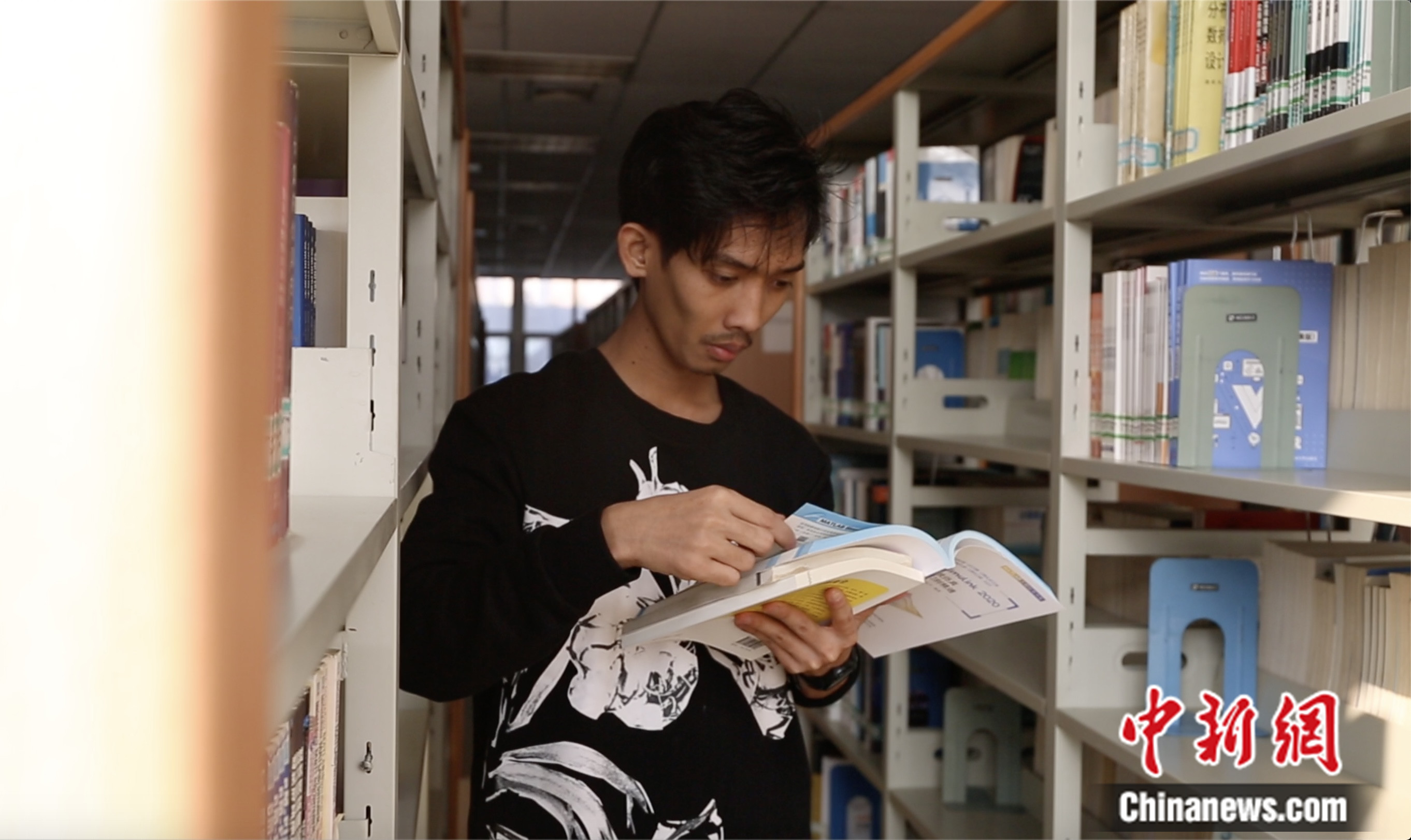 2023年10月,圖為印尼留學(xué)生陳君其在圖書館查閱資料。高瑩 攝