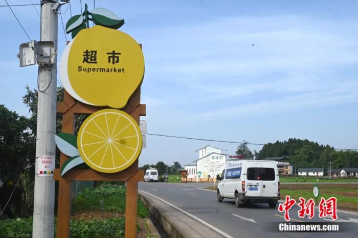 圖片圖為潼南鄉(xiāng)鎮(zhèn)的一處檸檬標(biāo)識。張旭 攝